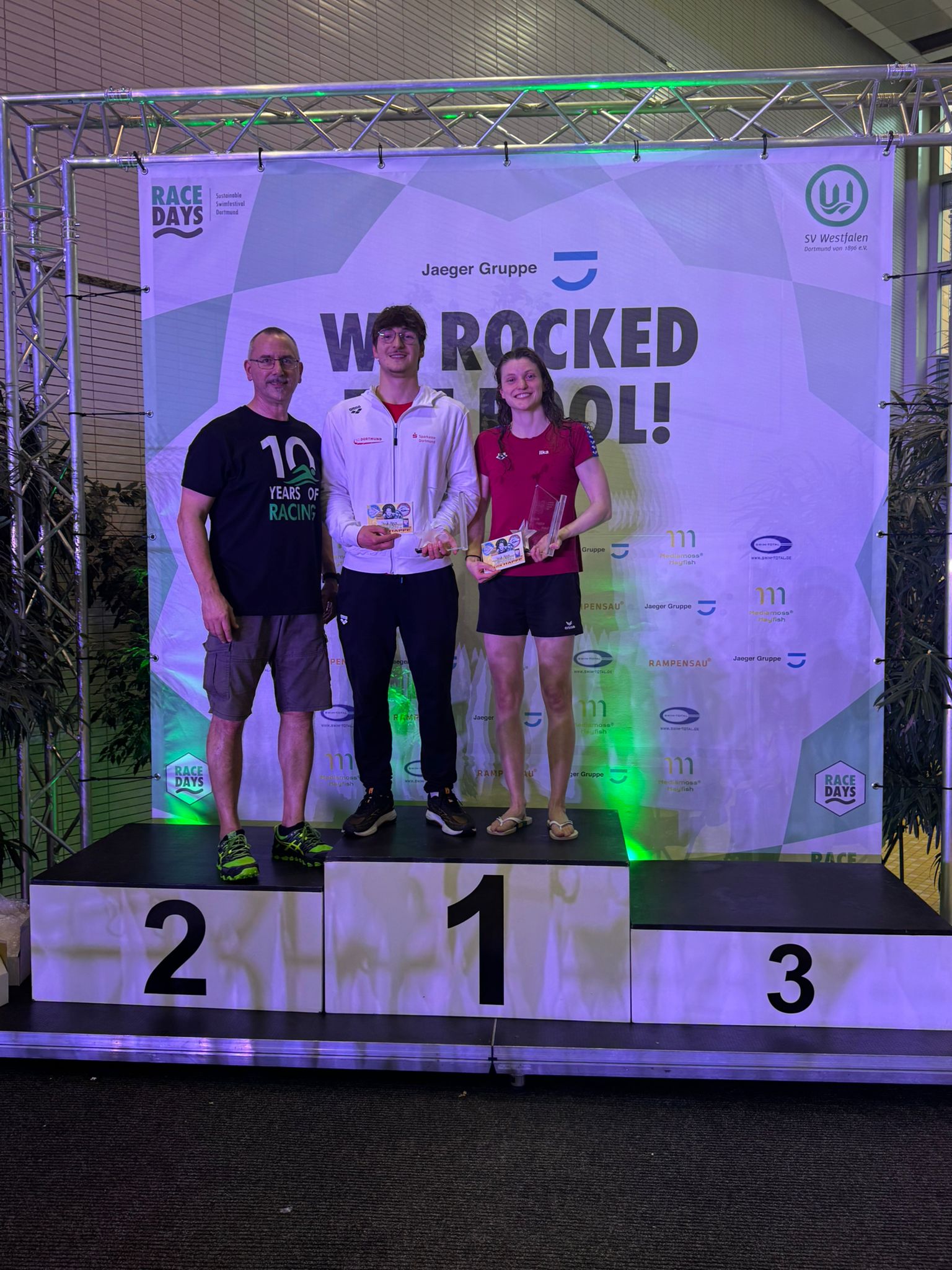 Pressetext661 Schwimmer aus sechs Nationen im Südbad – Swim Race Days feiern Jubiläum Dortmund. Wenn im Dortmunder Südbad das Licht gedimmt wird und Schwimmerinnen und Schwimmer unter Spots und Unterwasserscheinwerfern um den Sieg kämpfen, dann sind wieder Swim Race Days. In diesem Jahr gab es dabei ein kleines Jubiläum: Zum zehnten Mal richtete der SV Westfalen Dortmund die Veranstaltung aus. Zur aktuellen Ausgabe meldeten 46 Vereine aus sechs Nationen insgesamt 661 Athletinnen und Athleten. Mit 3145 Starts bot der Wettkampf über zwei Tage hinweg ein dichtes Programm. Auch Vertreter der Dortmunder Politik waren vor Ort. Ute Mais, zweite Bürgermeisterin der Stadt Dortmund, sowie die Ratsmitglieder Sascha Mader (CDU) und Stefan Meissner (Bündnis 90/Die Grünen) nutzten die Gelegenheit, sich ein Bild von der Veranstaltung zu machen. Ein Eindruck, der dabei deutlich wurde: Veranstaltungen wie die Swim Race Days tragen dazu bei, das Südbad als wichtigen Ort des Sports in Dortmund sichtbarer zu machen. Sportlich bot der Wettkampf zahlreiche enge Entscheidungen. Höhepunkt war erneut das Elimination Race, bei dem sich die Athleten nach einer Qualifikation über 200 Meter Lagen in mehreren Sprintduellen messen. Bei den Frauen setzte sich Colinda van der Zanden (Aqua-Novio ’94, Niederlande) im Finale über 50 Meter Schmetterling mit 0,29 Sekunden Vorsprung gegen Anna-Lena Kuhn (Rote Erde / Swim-Team Hamm) durch. Dritte wurde Zarina Selimovic (SG Dortmund / FS 98). Bei den Männern gewann David Munteanu (SG Dortmund / SV Westfalen) über 50 Meter Freistil mit nur 0,1 Sekunden Vorsprung vor Niels Dijkshoorn (Albion Swimming Rotterdam). Platz drei ging an Cooper Ritchie (SG Dortmund / SV Hellas). Tradition hat auch der Ursula-Happe-Pokal, der zu Ehren der Dortmunder Olympiasiegerin von 1956 vergeben wird. Bei den Männern gewann Christos Selkos (SV Westfalen), bei den Frauen Ilka Bathge (Wasserfreunde Bielefeld). Die besten Einzelleistungen der Veranstaltung erzielten Colinda van der Zanden mit 713 Punkten sowie Stefano Razeto (ST Erzgebirge) mit 779 Punkten. Neben dem Sport spielte auch gesellschaftliches Engagement eine Rolle. Während der Veranstaltung übergab der SV Westfalen eine Spende in Höhe von 600 Euro an den Ambulanten Kinder- und Jugendhospizdienst Dortmund. Auch die teilnehmenden Vereine äußerten sich positiv über das Wochenende. Ein Trainer des niederländischen Vereins Aqua-Novio schrieb im Anschluss: „Unsere Schwimmer, Eltern und Trainer haben das Wochenende sehr genossen.“ Ein Beispiel für den nachhaltigen Ansatz der Veranstaltung setzte der Hofheimer SC, der mit seiner gesamten Mannschaft per Bahn nach Dortmund anreiste. Nach zehn Jahren haben sich die Swim Race Days damit als fester Bestandteil des Wettkampfkalenders etabliert – und bringen regelmäßig Vereine aus der Region, aus Deutschland und aus dem Ausland nach Dortmund. | PresseboxSwim Race Days – Classic Line 2026 Veranstalter Austragungsort Jubiläum Teilnehmer Vereine Nationen Wettkampfstarts Beste Einzelleistungen Ursula-Happe-Pokal Elimination Race Team Race VZC Veenendaal (Niederlande) De Dinkel (Niederlande) Aqua-Novio ’94 (Niederlande) Mystery-Medley-Race Hofheimer SC CSM Pitesti (Rumänien) Region Ostschweiz (Schweiz) Soziales Engagement |