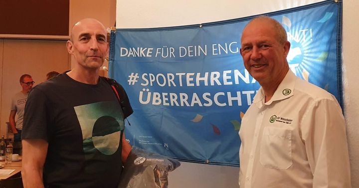 Auf unserer Mitgliederversammlung gab es zwei besondere Ehrungen. Zum einen wurde Markus Reinhardt für 50 Jahre Mirgliedschaft im Verein mit einem Genusskorb geehrt. Zum anderen wurde Carsten Dorn für seine engagierte Mitarbeit im Verein vom @landessportbund_nrw mit einem Überraschungspaket geehrt. Wir haben noch einen Rucksack oben drauf gelegt, damit er sein Überraschungspaket auch sicher nach Hause bringt.
