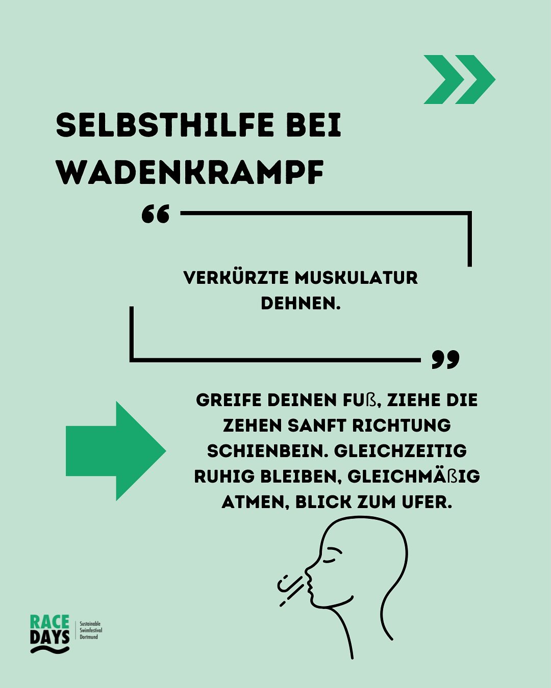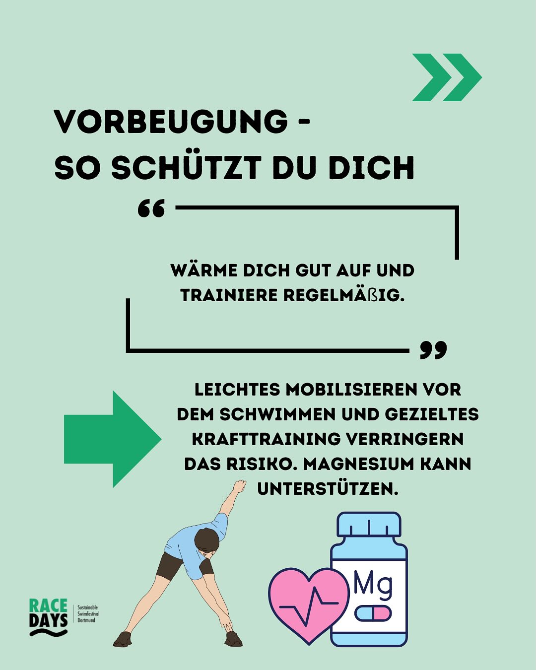 Noch besser: Vorbeugung durch gutes Aufwärmen, Magnesiumzufuhr und das Schwimmen in Begleitung.🏊🏼♂️