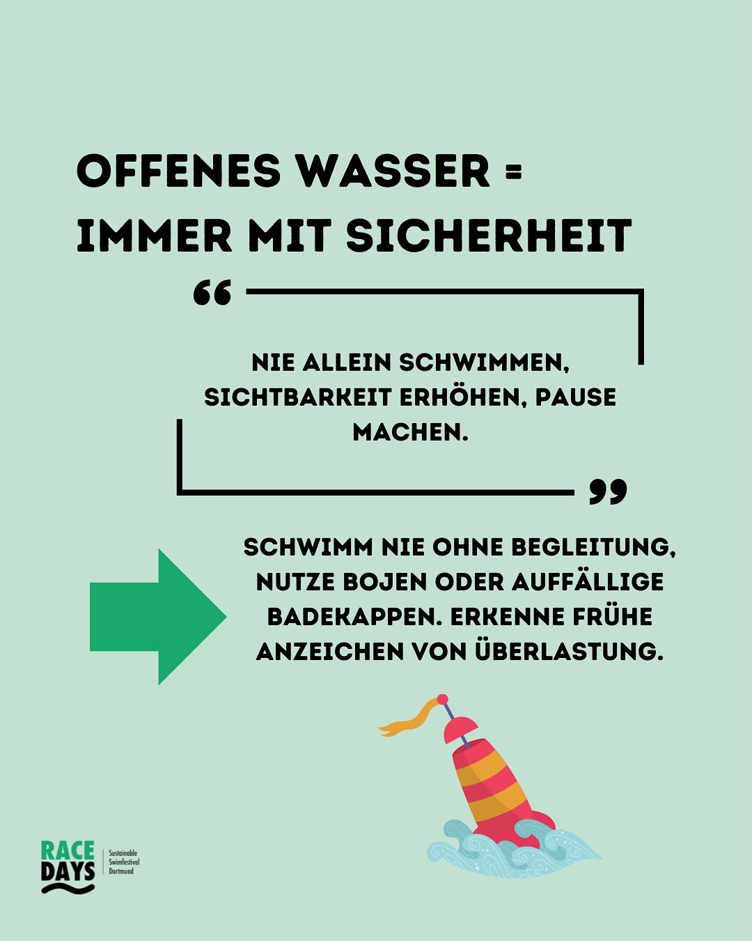 Schwimme also nicht allein und genieße mehr Sicherheit im Wasser.