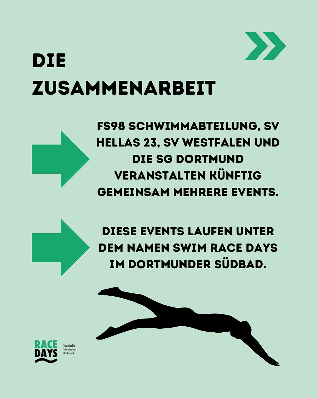 Gemeinsam mit der FS98 Schwimmabteilung, SV Hellas 23, SV Westfalen und SG Dortmund wird es künftig mehrere Events im Dortmunder Südbad geben - alle unter dem Namen der Swim Race Days.