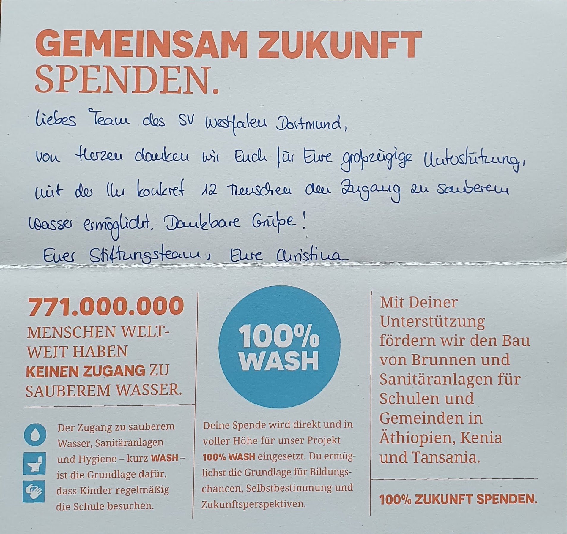 Dank eurer Unterstützung bei den Swim Race Days Dortmund konnten wir einen Teil der Einnahmen für soziale Projekte spenden. Dieses Jahr haben wir die Stiftung Well:fair mit einer Spende unterstützt und ein persönliches Dankeschön erhalten.