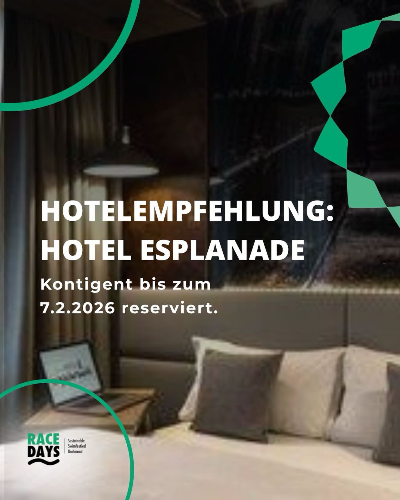Für euren Aufenthalt in Dortmund haben wir ein Zimmerkontingent im Hotel Esplanade reserviert.