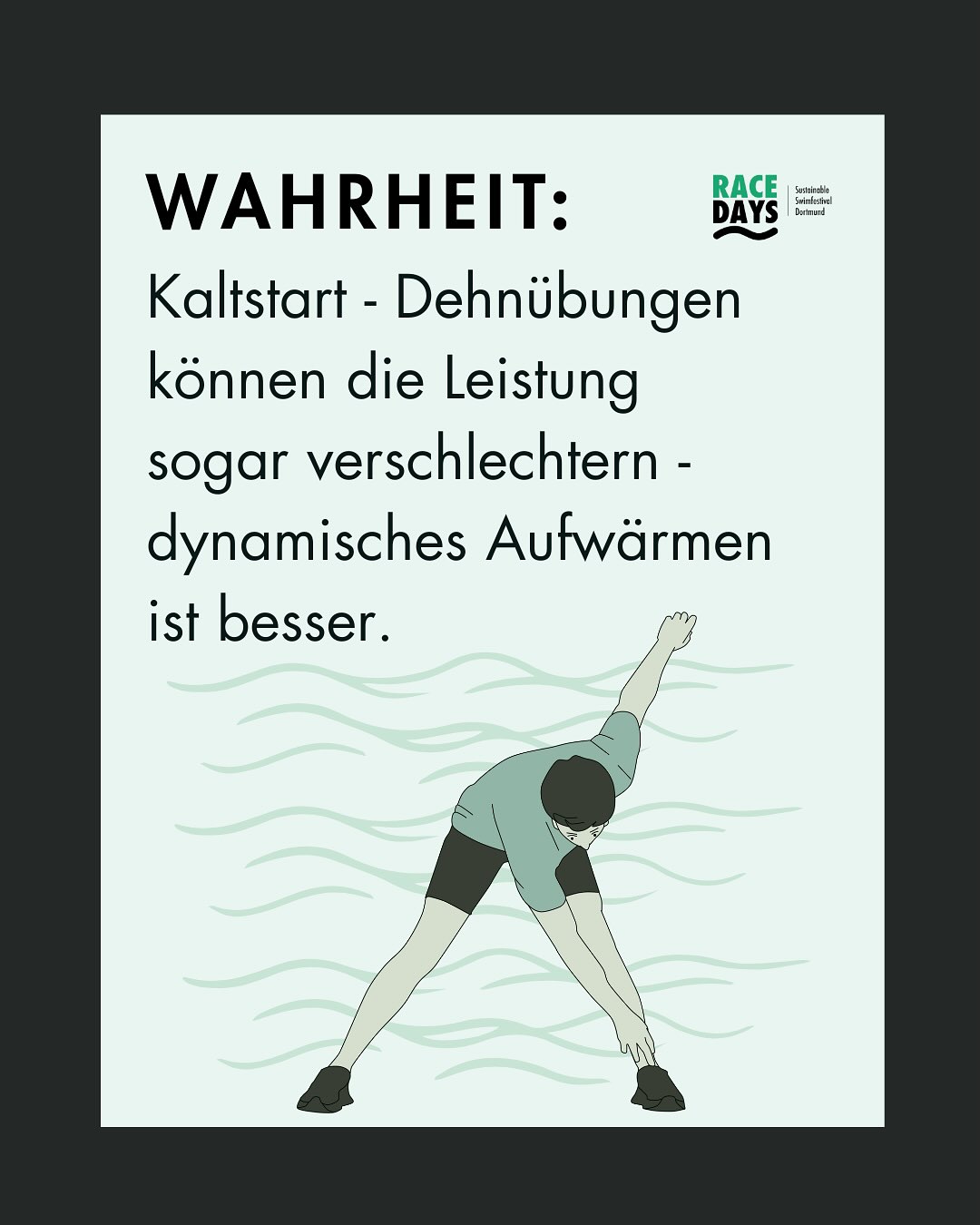 Kaltstart - Dehnübungen direkt vor dem Wettkampf können die Muskelspannung reduzieren und damit deine Leistung beinträchtigen.